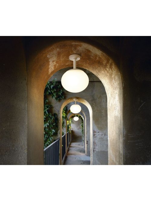 Die Deckenleuchte Elipse PF/50 Outdoor von Bover wurde von den Designern Alex Fernández Camps und Gonzalo Mila entworfen. Die Elipse PF/50 Outdoor ist die größere von zwei Leuchten aus dieser Serie. Diese kugelförmige Außenleuchte ist 57 cm hoch und hat einen Durchmesser von 50 cm, der Baldachin verfügt über einen Durchmesser von 14 cm. Diese weiße Außenleuchte ist aus widerstandsfähigem Polyethylen gefertigt und auf den Metalloberflächen silber eloxiert. Das sehr harte und widerstandsfähige Polyethylen, aus dem diese Deckenleuchte hergestellt wird, ist perfekt für den Außeneinsatz geeignet. Die Bover Elipse PF/50 Outdoor ist dank der Schutzklasse IP66 wetterbeständig und gegen UV-Strahlung geschützt. Diese Leuchte mit E27-Fassung kann mit LED-Retrofit Leuchtmitteln verwendet werden.