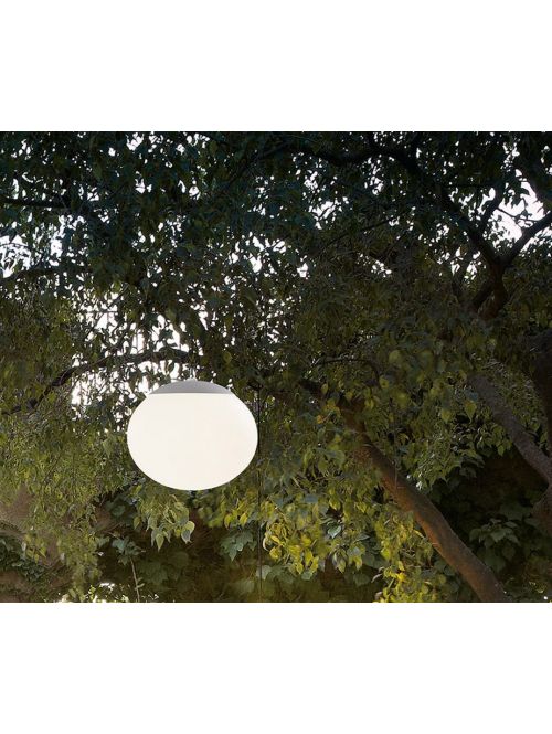 Die Elipse S/50 Outdoor von Bover mit der Elipsenform des Leuchtenschirms stammt von den Designern Alex Fernández Camps und Gonzalo Mila. Diese Außenleuchte ist 41,1 cm hoch und hat einen Durchmesser von 50 cm. Die Gesamthöhe dieser Außenleuchte beträgt 200 cm. Die weiße Außenleuchte ist aus widerstandsfähigem Polyethylen gefertigt und an den Metalloberflächen silber eloxiert. Das sehr harte und resistente Polyethylen, aus dem diese Leuchte gefertigt wird, ist perfekt geeignet für den Außenbereich. Die Bover Elipse S/50 Outdoor ist dank der Schutzklasse IP66 wetterbeständig und gegen UV-Strahlung geschützt. Mit ihrem schwarzen, wasserdichten Neoprenkabel, das zur Stromzufuhr dient, kann diese Außenleuchte jederzeit neu aufgehängt werden. Diese Pendelleuchte mit E27 Fassungen kann mit LED-Retrofit Leuchtmitteln betrieben werden.