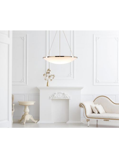 Die Florian Schulz Erea 55 Deckenleuchte hat die Form einer Schale aus opalem Glas in Weiß. Der Durchmesser der Leuchte beträgt 55 cm. Die Erea 55 ist bauseitig dimmbar. Die Deckenleuchte von Florian Schulz wird in den Oberflächen Messing poliert lackiert, Messing matt gebürstet lackiert, Messing vernickelt, Messing verchromt, Messing brüniert lackiert, Messing dunkel brüniert lackiert, Messing verkupfert, Messing vernickelt lackiert, Messing poliert unlackiert, Messing verkupfert matt gebürstet lackiert oder Messing vernickelt matt gebürstet angeboten.