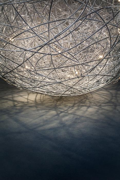 Sie wird mit 20 LED Lampen mit je einer Leistung von 0,8 Watt betrieben. Die LED Lampen lassen sich aufgrund der Fassungen austauschen. Diese Leuchte hat einen Durchmesser von 100 cm.