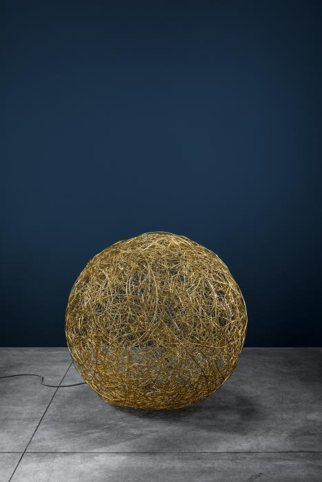 Die Hersteller Catellani & Smith Fil de Fer F 100 ist eine LED Stehleuchte. Sie wird aus vergoldetem oder unbehandeltem Aluminiumdraht geformt und besitzt eine Kugelform. Der integrierte Dimmer ist vernickelt. Es gibt diese Stehleuchte in den beiden Oberflächen Aluminium natur oder gold.