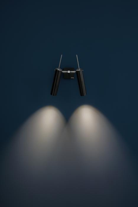 Die Catellani & Smith Lucenera 503 Parete ist eine zweiflammige Wandleuchte mit zwei Reflektoren. Jeder Reflektor verfügt über ein verstellbares Kippgelenk, dadurch lässt sich die Leuchte zu jeder Zeit neu ausrichten. Es gibt die Wandleuchte mit zwei verschiedenen Oberflächen für die Reflektoren, sie werden entweder in Schwarz (aus Karbonfaser) oder Weiß (aus Technofiber) angeboten. Der Leuchtenstab und die Wandhalterung sind jeweils auch in der gleichen Farbe. Diese Leuchte wird über einen Ein-/Aus-Schalter an der Wandhalterung reguliert. Durch das Verschieben der Reflektoren nach vorn oder hinten lässt sich der Abstrahlwinkel des Lichts beliebig verstellen.