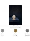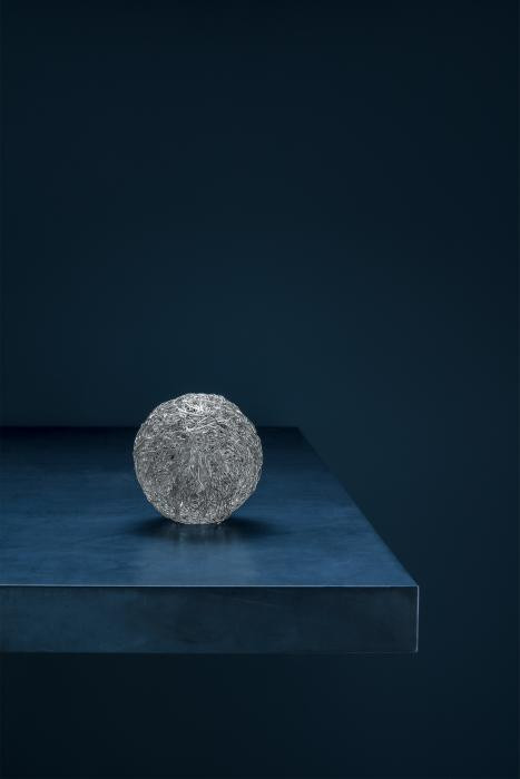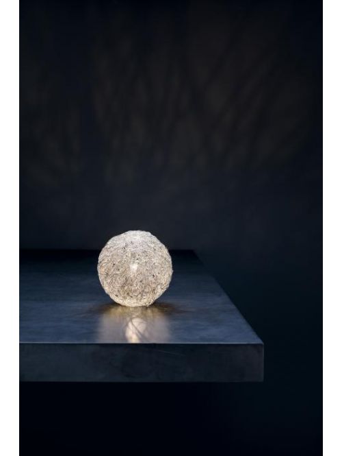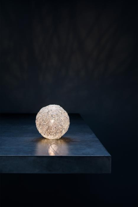 Die Catellani & Smith Sweet Light T ist eine Tischleuchte. Sie besteht aus einer Kugel, die in verschiedenen Oberflächen erhältlich ist. Alle Versionen werden aus Aluminiumdraht gefertigt, wobei dieser in silberner Farbe, in Messing-Farbe oder unbehandeltem Natur-Aluminium angeboten wird. Aus dem Inneren der Tischleuchte leuchtet eine Niedervolt-LED. Durch längeres Berühren der Leuchte selbst wird das Licht gedimmt.