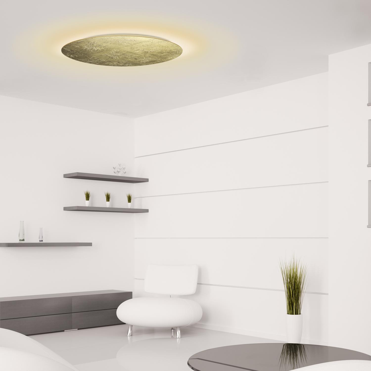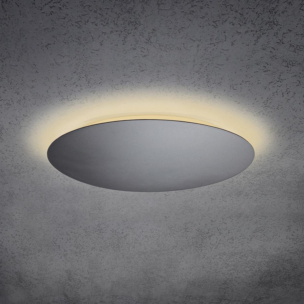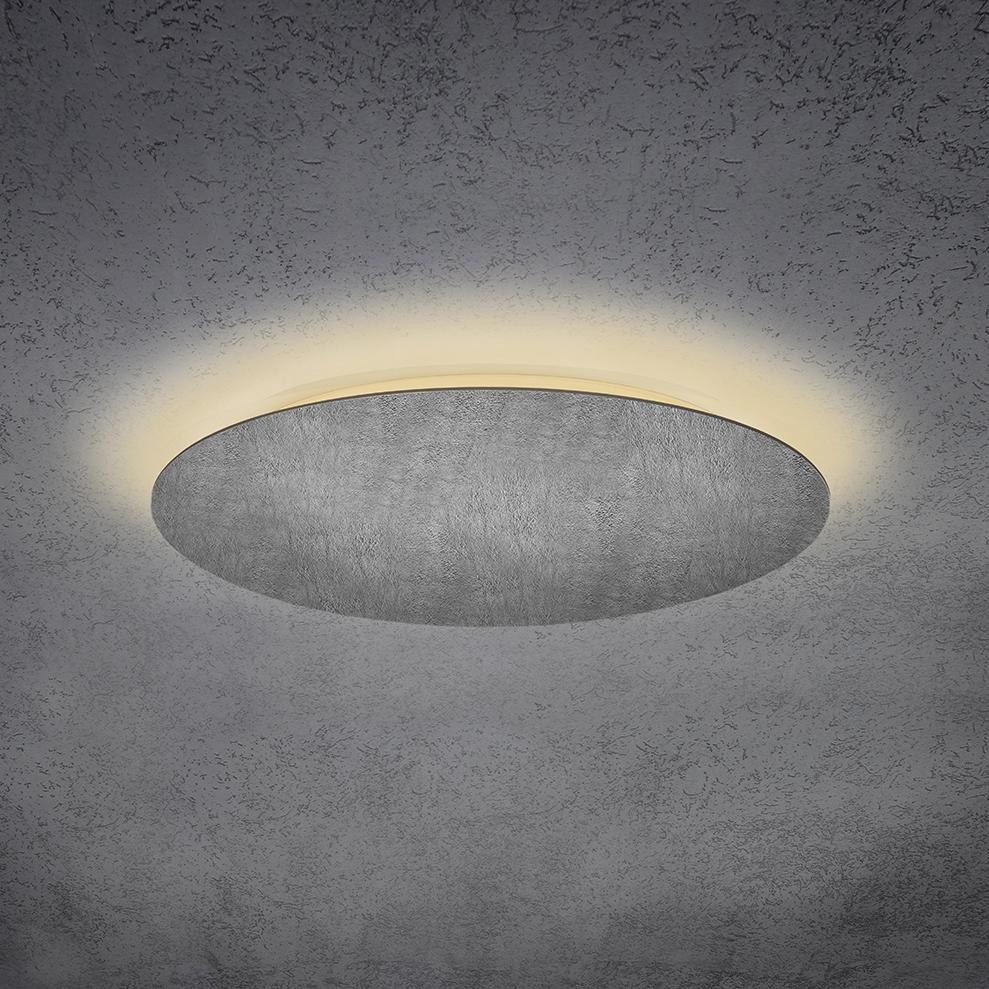 Die Escale Blade 79 cm kann als Decken- oder Wandleuchte verwendet werden. Sie verfügt über einen Durchmesser von 79 cm und eine Tiefe von 3,5 cm. Das Licht wird an die Decke oder Wand abgegeben, von wo es reflektiert wird und dadurch einen Halo-Effekt um die Leuchte erzeugt. Die Wand- und Deckenleuchte wird in diesen Oberflächen angeboten: weiß matt, schwarz matt, silber matt eloxiert, Betonoptik, Blattgold, taupe eloxiert und anthrazit. Eine LED mit einer Farbtemperatur von 2.700 Kelvin extra warmweiß ist als Leuchtmittel integriert.