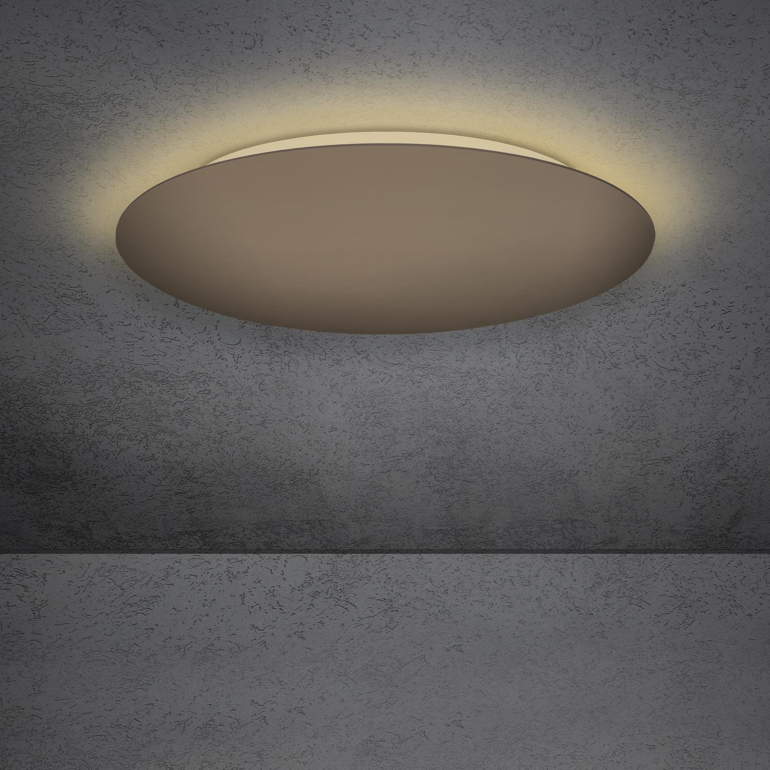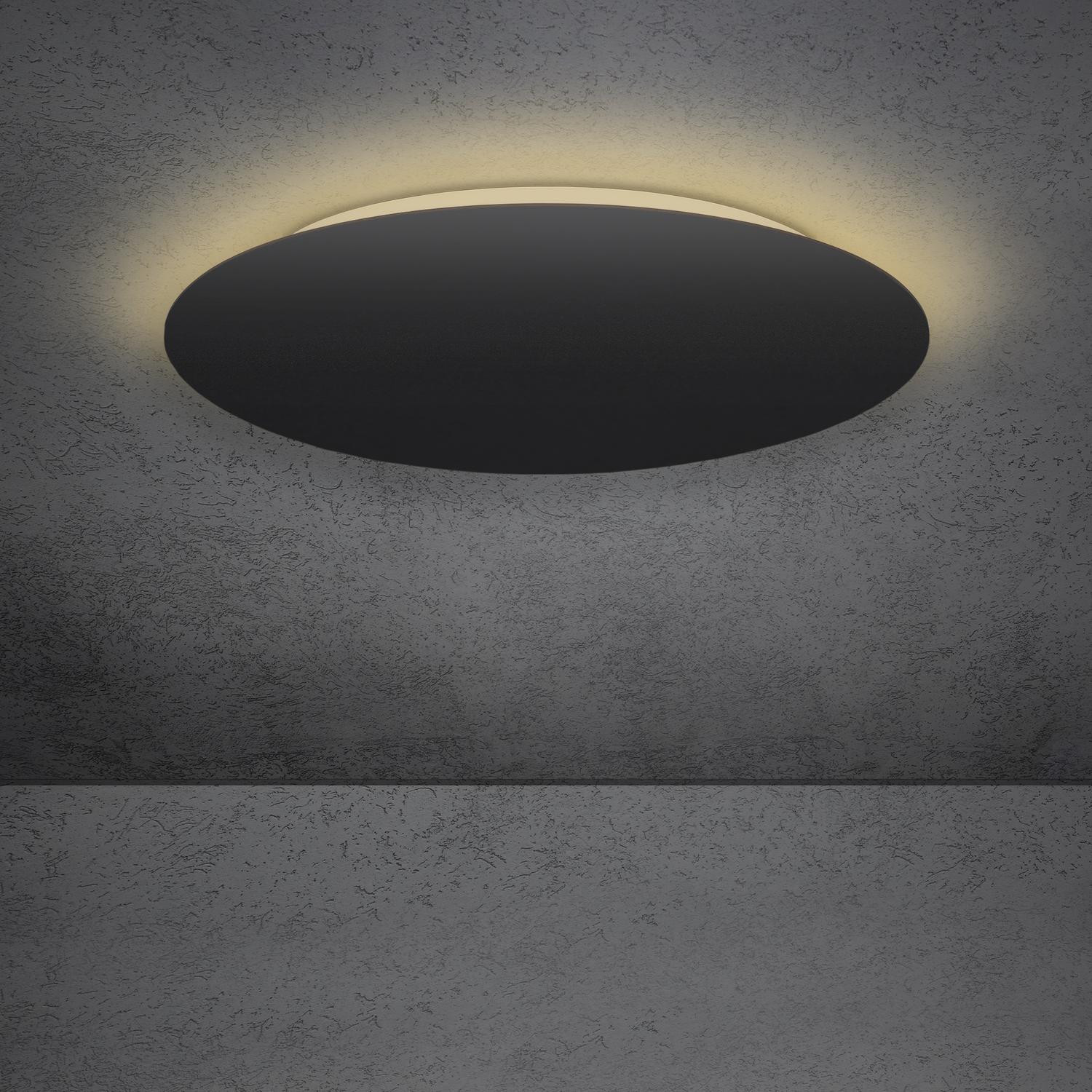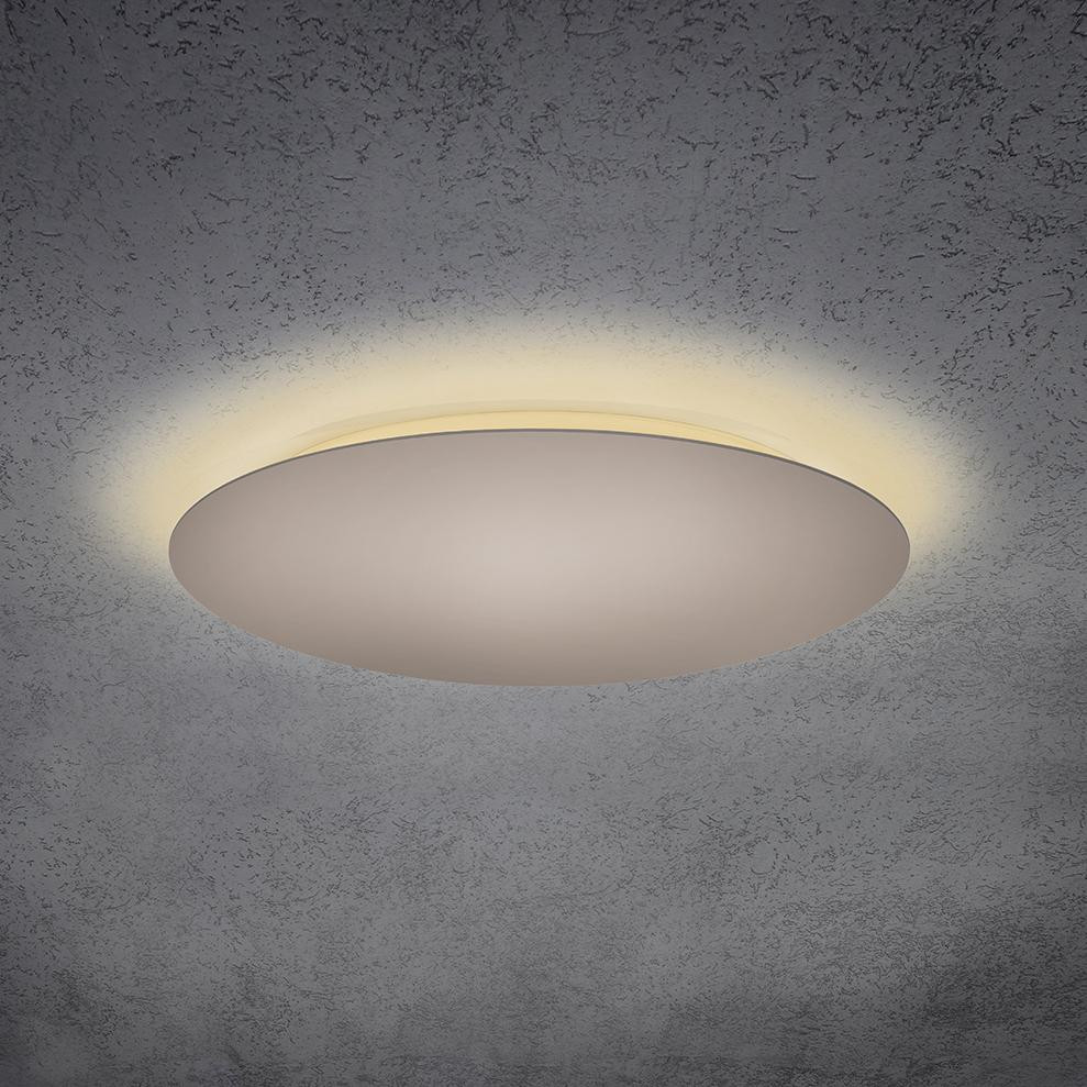 Die Escale Blade 79 cm kann als Decken- oder Wandleuchte verwendet werden. Sie verfügt über einen Durchmesser von 79 cm und eine Tiefe von 3,5 cm. Das Licht wird an die Decke oder Wand abgegeben, von wo es reflektiert wird und dadurch einen Halo-Effekt um die Leuchte erzeugt. Die Wand- und Deckenleuchte wird in diesen Oberflächen angeboten: weiß matt, schwarz matt, silber matt eloxiert, Betonoptik, Blattgold, taupe eloxiert und anthrazit. Eine LED mit einer Farbtemperatur von 2.700 Kelvin extra warmweiß ist als Leuchtmittel integriert.