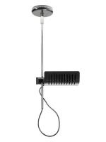 Die Oluce Colombo Serie besteht aus einer Tisch-, einer Steh-, einer Wand- und einer Deckenleuchte. Bis auf die Tischleuchte verfügen alle anderen drei Leuchten über einen Leuchtenkopf, der sich entlang eines Stabs in seiner Höhe verstellen und drehen lässt. Joe Colombo kreierte alle Leuchten aus dieser Serie außer der Tischleuchte schon 1972. Die Colombo 281 verfügt über einen Leuchtenfuß sowie einem transparenten Leuchtenkörper zusammen. Sie gibt diffuses Raumlicht sowie indirektes Licht ab. Die Tischleuchte wurde schon 1962 entworfen, sie war die erste Leuchte, die Joe Colombo für Oluce kreierte. Gleichzeitig war sie auch die einzige Leuchte, die er zusammen mit seinem Bruder Gianni entwarf, der anschließend als Künstler der Kinetischen Darstellung tätig war. Der Kopf der Stehleuchte 626 ist drehbar und kann entlang des Leuchtenstabs in seiner Höhe verstellt werden. Diese Leuchte wird in Schwarz, weiß oder in Aluminium poliert angeboten. Auf der Zuleitung befindet sich der integrierte Dimmer. Die Wandleuchte 761 sowie die Deckenleuchte 885 werden in Schwarz oder Weiß lackiert angeboten. Sowohl die Wand- als auch die Deckenleuchte sind mit einem drehbaren Leuchtenkopf ausgestattet, der entlang des Stabs höhenverstellbar ist. Die Deckenleuchte 885, die auch als Pendelleuchte betrachtet werden kann, verfügt zudem über einen Stab, der in seiner Höhe zwischen 60 und 90 cm verstellt werden kann.