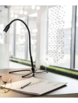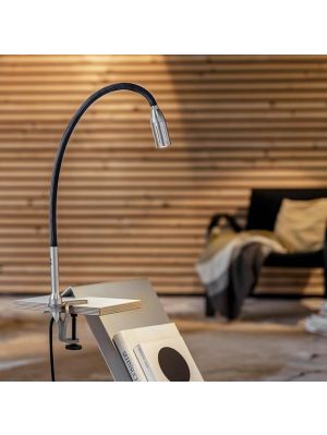 Die less n more Zeus Leuchten umfassen Tisch-, Wand- und Deckenleuchten. Zentrales Element einer jeden Leuchte ist der verstellbare Leuchtenkopf aus Aluminium. An diesem Leuchtenkopf lässt sich der Abstrahlwinkel stufenlos zwischen 15° und 75° verstellen. Dafür ist es nur notwendig, die Glaslinse per Hand aus dem Kopf hinaus- oder wieder hinein zu drehen. Als Leuchtmittel ist eine 2,5 Watt leistungsstarke LED mit 2.700 Kelvin (extra warmweiß) verbaut. Der Leuchtenkopf ist immer an einem frei beweglichen Flexarm befestigt. Dieser Flexarm wird von less n more mit verschiedenen Oberflächen angeboten: Aluminium gebürstet oder Textil in rot, anthrazit, schwarz, weiß, blau, braun oder grün. Es gibt drei Tischleuchten aus dieser Serie. Die Zeus Tischleuchte verfügt über einen V-förmigen Leuchtenfuß aus Edelstahl. Über einen Schnurschalter lässt sie sich ein- und ausschalten. Die Klemmleuchte lässt sich an jedem beliebigen Tisch anbringen und jederzeit wieder abnehmen. Auch sie ist mit einem Schalter auf der Zuleitung ausgestattet. Die Einbauleuchte (vom Hersteller Aufbauleuchte genannt) wird direkt in die Tischplatte eingebaut und weist einen flachen Leuchtenfuß mit einem Durchmesser von 6 cm auf. Abgesehen von den verschiedenen Oberflächen für den Arm gibt es für diese Leuchte zwei Ausführungen. Die eine Variante ist bauseitig dimmbar (mit einem Phasenabschnittdimmer), die andere verfügt über einen schon integrierten Tastdimmer.