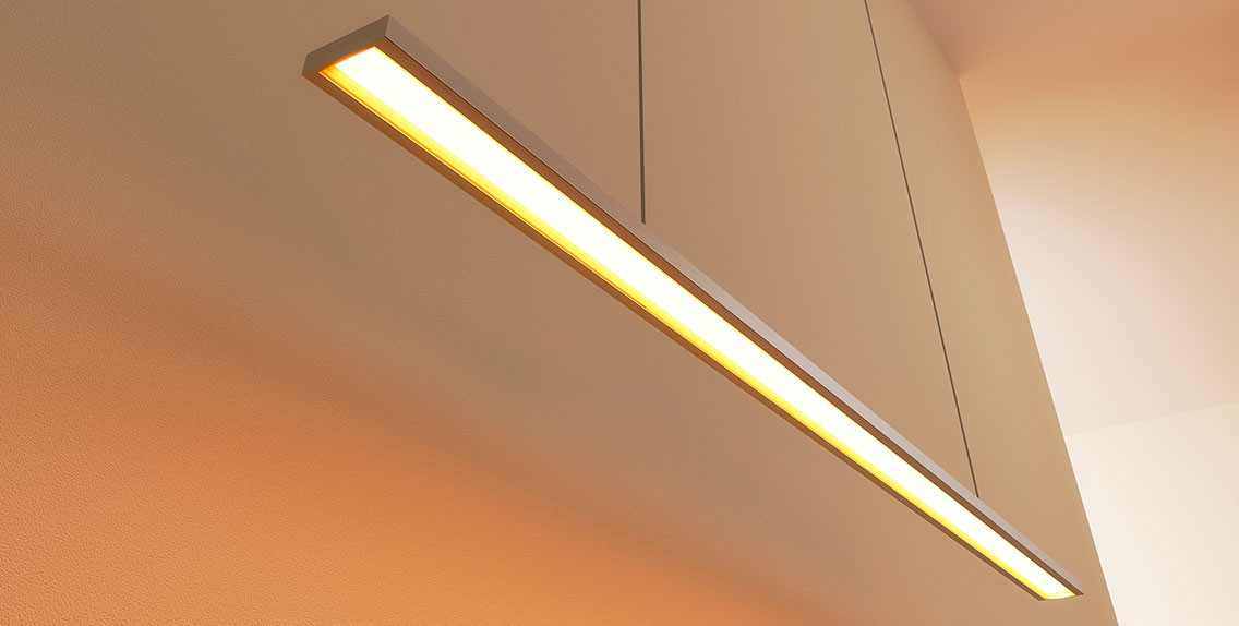 Die Gera Leuchten Pendelleuchte (Länge 90 cm) 40x10x900 ist eine schlanke, längliche LED-Pendelleuchte aus Aluminium, die in unterschiedlichen Oberflächen erhältlich ist. Diese Pendelleuchte ist in der Gesamthöhe von 20 cm bis 250 cm einstellbar. Die per Sensordimmer schalt- und dimmbare Leuchte ist wahlweise mit einer Farbtemperatur von 2.700 Kelvin extra warmweiß und 4.000 Kelvin weiß erhältlich.