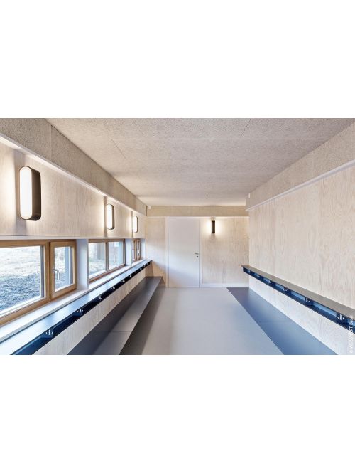 Die Mawa Oval Office 4 Wandleuchte gibt ihr Licht gleichzeitig nach oben und unten ab. Dabei wird das Licht durch satinierte Diffusoren aus Acrylglas oben und unten an der Leuchte entblendet und teilweise von der Wand in den Raum reflektiert. Diese Leuchte kann horizontal oder vertikal an der Wand montiert werden. Sie ist 37,5 cm breit und 10 cm hoch. Ihre Tiefe beträgt 11,5 cm. Die Oval Office 4 wird aus Aluminium hergestellt und ist in den pulverbeschichteten Oberflächen weiß matt, dunkelbronze und DB702 grau-metallic erhältlich. Als Leuchtmittel ist eine LED integriert, die bauseitig mit einem Phasenanschnitt- oder Phasenabschnittdimmer gedimmt werden kann. Die Wandleuchte wird sowohl mit einer Farbtemperatur von 2.700 Kelvin extra warmweiß als auch mit 3.000 Kelvin warmweiß angeboten.