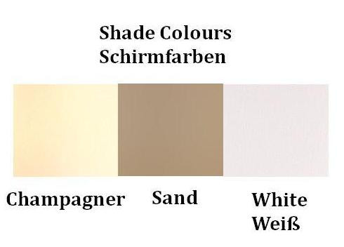 Der Holtkötter 6354 18cm Ersatzschirm wird aus hochwertigem Chintz hergestellt. Er wird in den Schirmfarben weiß, sand und champagner angeboten. Dieser Schirm hat eine Höhe von 36 cm und unten einen Durchmesser von 18 cm. Oben ist der Schirmdurchmesser 12 cm.