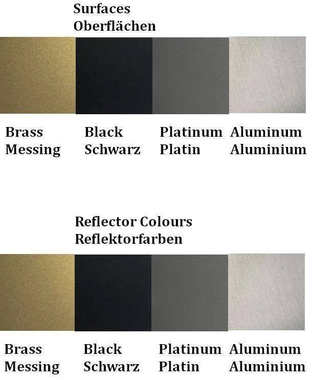 Die Holtkötter Aura S Stehleuchte hat einen Reflektor aus Metall, der sich beliebig ausrichten lässt. Dadurch kann das Licht direkt dorthin gelenkt werden, wo es benötigt wird. Der Reflektor wird in den Farben Messing eloxiert, schwarz, Platin und Aluminium matt angeboten. Zusätzlich ist die Stehleuchte in den Oberflächen Messing eloxiert, schwarz, Platin und Aluminium matt erhältlich. Leuchtenstab und Leuchtenfuß haben immer die gleiche Oberfläche wie der obere Teil des Leuchtenkopfs.