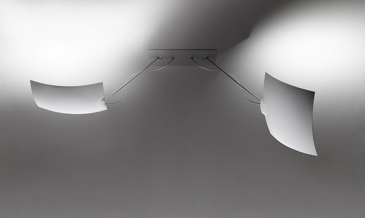 Die Ingo Maurer 2 x 18 x 18 ist eine Deckenleuchte, die auch als Wandleuchte verwendet werden kann. Flexibel einstellbar ist sie durch zwei Kugelgelenke, mit denen die Schirme beliebig ausrichtbar sind. Die weißen Schirme können sogar unabhängig voneinander ausgerichtet werden. Die Leuchte ist mit zwei LEDs ausgestattet. Das Licht wird indirekt an die Decke oder die Wand abgegeben.