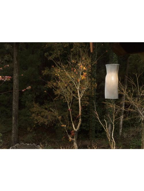 Die Arturo Alvarez Gea GE04-EXT verfügt über die Schutzart IP64 und eignet sich daher als Außenleuchte. Mit dieser Schutzart ist sie staubdicht und gegen allseitiges Spritzwasser geschützt. Ihr Leuchtenschirm ist 45 cm hoch und verfügt über einen Durchmesser von 19 cm. Er besteht aus einem lackierten Edelstahl-Metallgeflecht und wird in den Oberflächen weiß und grau angeboten. Auf Anfrage gibt es die Leuchte auch in taupe und beige. Dieses Edelstahl-Metallgeflecht ist ein durchscheinendes und flexibles Maschengewebe aus Metall, das bei der Herstellung in die gewünschte Form und Struktur gebracht wird. Das schwarze, wasserdichte Neoprenkabel dieser Pendelleuchte ist bei Bedarf kürzbar. Die Leuchte kann mit einer E27 LED Retrofit betrieben werden.