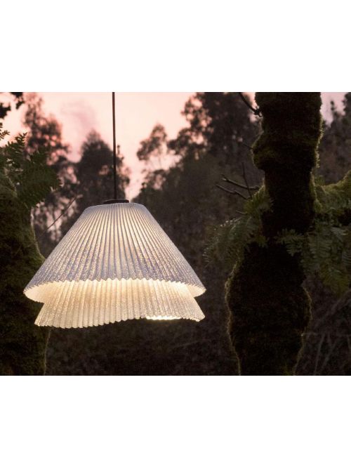 Die Tempo ist eine Hängeleuchten-Kollektion aus lackiertem Edelstahlgewebe. Dieses in feinen Falten gearbeitete Material bildet zwei sich überlappende Schichten, die zwei unterschiedliche Leuchtenkörper voller Dynamik schaffen. Andante und Vivace sind zwei Formen voller Lebendigkeit, die aus einer einzigen entstehen. Sie sind die Darstellung von zwei Augenblicken, die durch dieselbe Bewegung in unterschiedlichem Tempo entstehen.