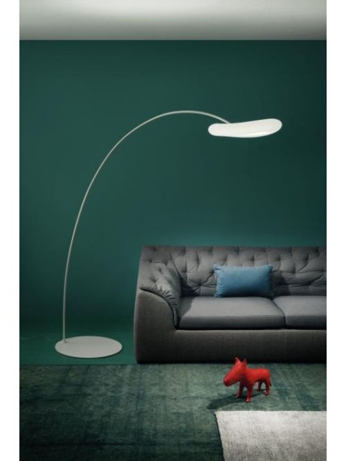 Die Stilnovo Mr. Magoo FL ist eine moderne Stehleuchte mit weichen Linien und von kühnem Design, mit einem weißen Polyethylen-Diffusor auf einer weiß lackierten Metallstange. Mit einem breiten Leuchtenfuß aus dem gleichen Material und mit demselben Finish. Inspiriert durch den Hut der gleichnamigen Filmfigur, ist sie eine phantasievolle und vielseitige Stehleuchte, ausgestattet mit einer topLED-Quelle mit warmem Licht. Perfekt für Wohnbereiche oder gewerbliche Umgebungen sowie moderne oder klassische Ambiente.