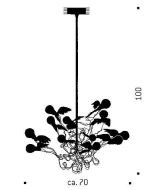 Die Ingo Maurer Birds Birds Birds ist ein außergewöhnlicher Kronleuchter aus der Birdie Serie. Die Größe und Form dieser Leuchte ist durch Drehen, Biegen und Strecken der Arme veränderbar. An den Fassungsenden der 24 Aluminiumdrähte sind die unverwechselbaren Flügel aus Gänsefedern befestigt, die an einen Schwarm aufsteigender Vögel erinnern. Der bauseitig dimmbare Transformator ist im Deckenbaldachin integriert. Die Anschlusskabel werden in blau/rot oder transparent angeboten. Dieser Kronleuchter verwendet spezielle LED Leuchtmittel, die nur in Leuchten der Birdie Serie eingesetzt werden können. Der Kronleuchter wird mit vierundzwanzig 1,5 Watt LED Leuchtmittel geliefert. Die Birds Birds Birds ist in drei Längen erhältlich: mit einer Standardlänge von 190 cm, mit einer Länge von 130 cm für niedrige Raumhöhen oder mit bis zu einer Länge von 300 cm für hohe Raumhöhen.