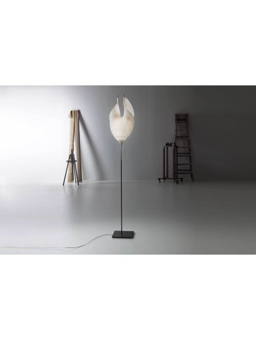 Die Ingo Maurer Babadul Stehleuchte verfügt über einen Leuchtenstab aus Edelstahl sowie einen Schirm aus japanischem Papier. Der Schirm wird in aufwendiger Handarbeit in bis zu acht Arbeitsgängen bearbeitet, bis er seine endgültige Form erreicht. Dabei wird ein patentiertes Verfahren angewandt, das auf einer traditionell japanischen Textilfärbe-Technik beruht. Obwohl die Schirme gleich aussehen, ist jeder ein Unikat. Die Ingo Maurer Babadul kann in ihrer Höhe zwischen 130 cm und 160 cm verstellt werden. Sie hat einen integrierten Dimmer auf der Zuleitung: Durch einmaliges, kurzes Drücken des Dimmers wird die Leuchte eingeschaltet. Durch längeres Drücken wird sie stufenlos gedimmt. Diese Stehleuchte gehört zur Serie der MaMoNouchies, die Ingo Maurer und sein Team in Zusammenarbeit mit Dagmar Mombach entworfen haben.