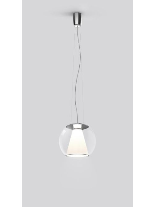 Die Serien Lighting Draft Suspension Rope S besitzt ein mundgeblasenes, transparentes Glas mit einem konischen Reflektor aus opalem Acrylglas. Die Pendelleuchte ist in den Glasfarben klar, braun und blau erhältlich. Der Reflektor richtet das abgegebene Licht direkt nach unten und streut es rundum weich und gleichmäßig.