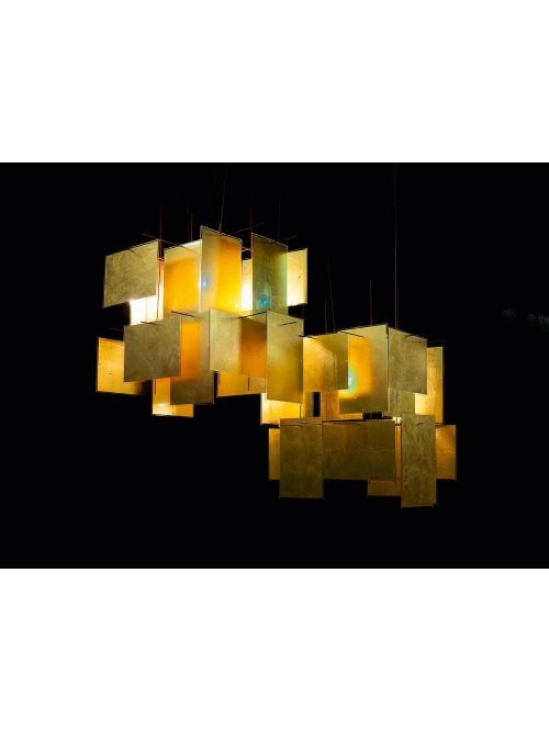Das Ingo Maurer 1000 Karat Blau Erweiterungsmodul ist keine eigenständige Leuchte, sondern erweitert die 1000 Karat Blau Pendelleuchte. Im Unterschied zu dieser Leuchte verfügt das Erweiterungsmodul nur über 18 Blenden aus Blattgold und Acrylglas. Jedes Modul kann auf vielfältige Weise an den dafür vorgesehenen Verbindungsstellen der Standardleuchte angebracht werden (s. Montageanleitung).