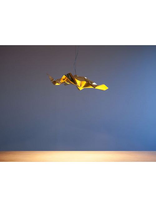 Wie ein Kleid im Aufwind über einem U-Bahnschacht schwebt die NormaJeane Lusso von Lichtlauf über dem Tisch und sendet kräftiges, weiches Licht nach unten. Der Leuchtenschirm dieser Pendelleuchte ist in Gold, Kupfer und Silber erhältlich. Jede Leuchte ist, individuell von Hand geformt, ein Unikat. Oberseite und Unterseite des Leuchtenschirms aus Aluminium sind wahlweise von Hand belegt mit Blattmetall Gold, Silber oder Kupfer erhältlich. Die integrierte LED mit einer Leistung von 12 Watt verfügt über eine Farbtemperatur von 3.000 Kelvin warmweiß. Das Licht der integrierten LED zeichnet sich durch eine sehr gute Farbwiedergabe mit einem hohen Farbwiedergabeindex von Ra 90 aus. Der Leuchtenschirm der NormaJeane Lusso ist 40 cm breit, 40 cm lang und 12 cm hoch. Durch den handwerklichen Herstellungsprozess bedingt kann es zu Unregelmäßigkeiten in der blattveredelten Oberfläche kommen. Diese Pendelleuchte verfügt über ein 200 cm langes transparentes Kabel, welches bei Bedarf kürzbar ist. Die Höhenverstellung erfolgt direkt am Drahtseil. Die NormaJeane Lusso von Lichtlauf ist als dimmbare oder nicht dimmbare Version erhältlich. Auf Anfrage ist diese Leuchte auch mit anderen Pendellängen erhältlich.