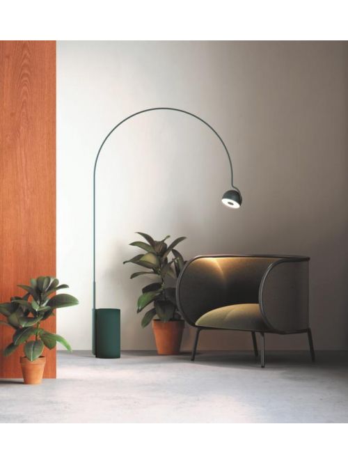 Die B.Lux Bowee F ist eine LED Stehleuchte mit einem halbkugelförmigen Leuchtenschirm und einem Betonfuß. Der Leuchtenschirm ist um 340 Grad dreh- und um 300 Grad schwenkbar. Ihr bogenförmiger Leuchtenstab ist zudem um 350 Grad schwenkbar, dadurch lässt sich das Licht jederzeit neu ausrichten. Die Bogenleuchte wird in folgenden Oberflächen angeboten: beige, helltürkis und schwarz. Der Leuchtenschirm der Bowee verfügt über einen Durchmesser von 14 cm. Die Stehleuchte ist 181 cm hoch und verfügt über eine Ausladung von 108 cm. Ihr Leuchtenfuß aus Beton sorgt für einen sicheren Stand und ist 35 cm hoch. Er hat einen Durchmesser von 18 cm. Als Leuchtmittel ist eine LED mit einer Farbtemperatur von 2.700 Kelvin extra warmweiß inklusive. Auf der Zuleitung ist ein Dimmer integriert. Auf Anfrage ist auch eine Version erhältlich, die mit einem Casambi Modul per Smartphone via Bluetooth gedimmt werden kann.