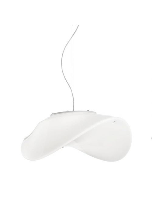 Die Vistosi Balance SP M Pendelleuchte hat einen Leuchtenschirm aus mundgeblasenem, 3-fach beschichtetem Kristallglas. Dieser Diffusor ist weiß glänzend und sorgt für eine gleichmäßige und blendfreie Lichtabgabe in alle Richtungen. Die Leuchte hat eine Länge von 46 cm, eine Breite von 40 cm und eine Höhe von 17 cm. Die Balance SP M ist in drei Versionen erhältlich: als Halogen-E27-Leuchte und als zwei LED Leuchten.