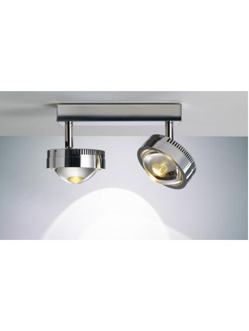 Der Licht im Raum Ocular Spot 2 Serie 100 verfügt über Dreh- und Kippgelenke, mit denen die Leuchtenköpfe beliebig gedreht werden können. Die Linsen in den Leuchtenköpfen verfügen über einen Durchmesser von 100 mm und sind schwenkbar. Der zweiflammige Deckenstrahler lässt sich auch als Wandstrahler einsetzen. Das Licht wird durch die Glaslinsen gebündelt und genau an die richtige Stelle gelenkt. Dies ist der größere und lichtstärkere Strahler von zwei Leuchten dieser Kollektion.
