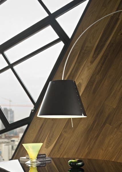 Die Luceplan Lady Costanza Wandleuchte Dimmer lässt sich in der Höhe zwischen 215 und 248 cm verstellen. Außerdem ist sie bis fast 180 Grad an der Wandhalterung drehbar und daher auch als Leseleuchte geeignet. Die gebogene Form des Stabs ermöglicht es, mit dieser Leuchte einen Tisch oder ein Sofa gut auszuleuchten und gleichzeitig den Boden nicht vollzustellen.