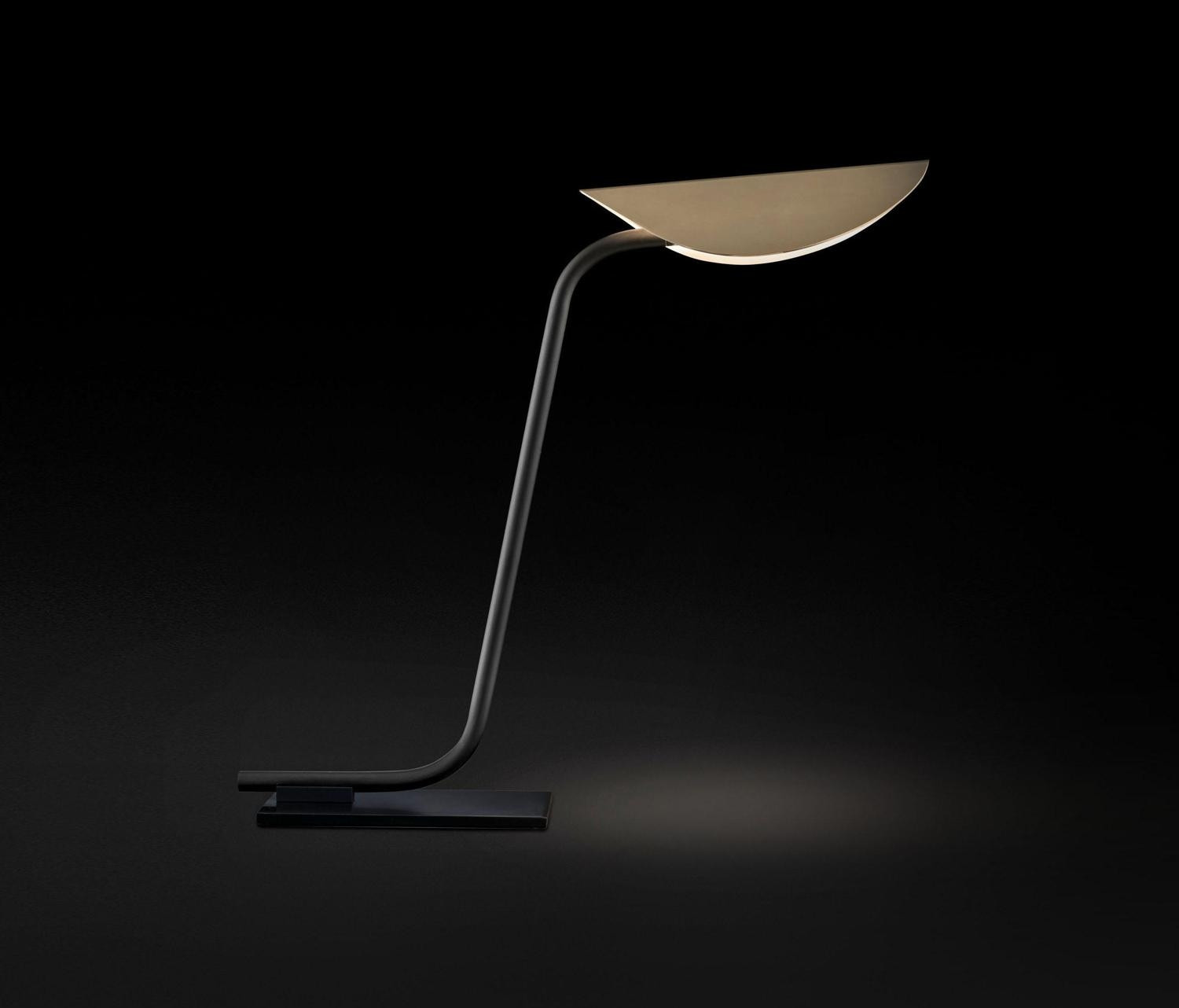Die Oluce Plume 221 ist eine Tischleuchte mit direkter Lichtabgabe. Die Leuchte ist aus Metall und eloxierter Bronze. Sie verfügt über einen gebogenen Leuchtenstab. Die Leuchte ist insgesamt 50 cm hoch und hat eine Ausladung von 55 cm. Als Leuchtmittel kann eine E14 Hochvolt-Halogenlampe mit maximal 40 Watt oder eine LED Retrofit verwendet werden.