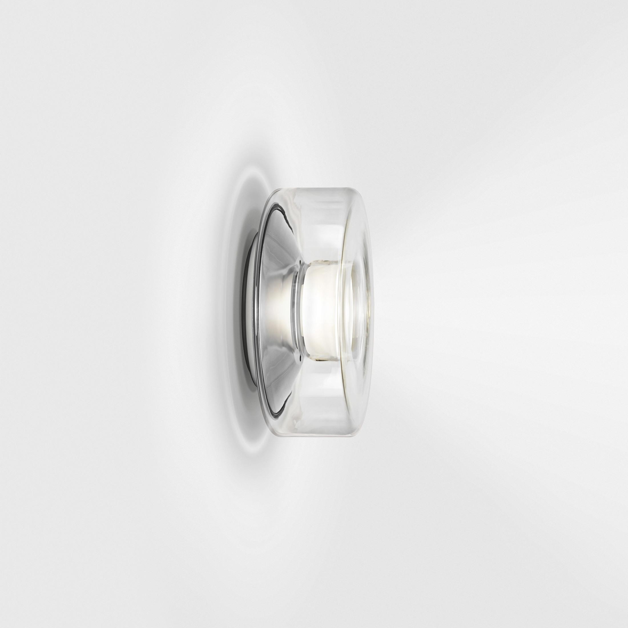 Um die Serien Lighting Curling Wall klar S entsteht ein Lichteffekt an der Wand. Die Wandleuchte hat einen Durchmesser von 18 cm und eine Tiefe von insgesamt 9 cm.