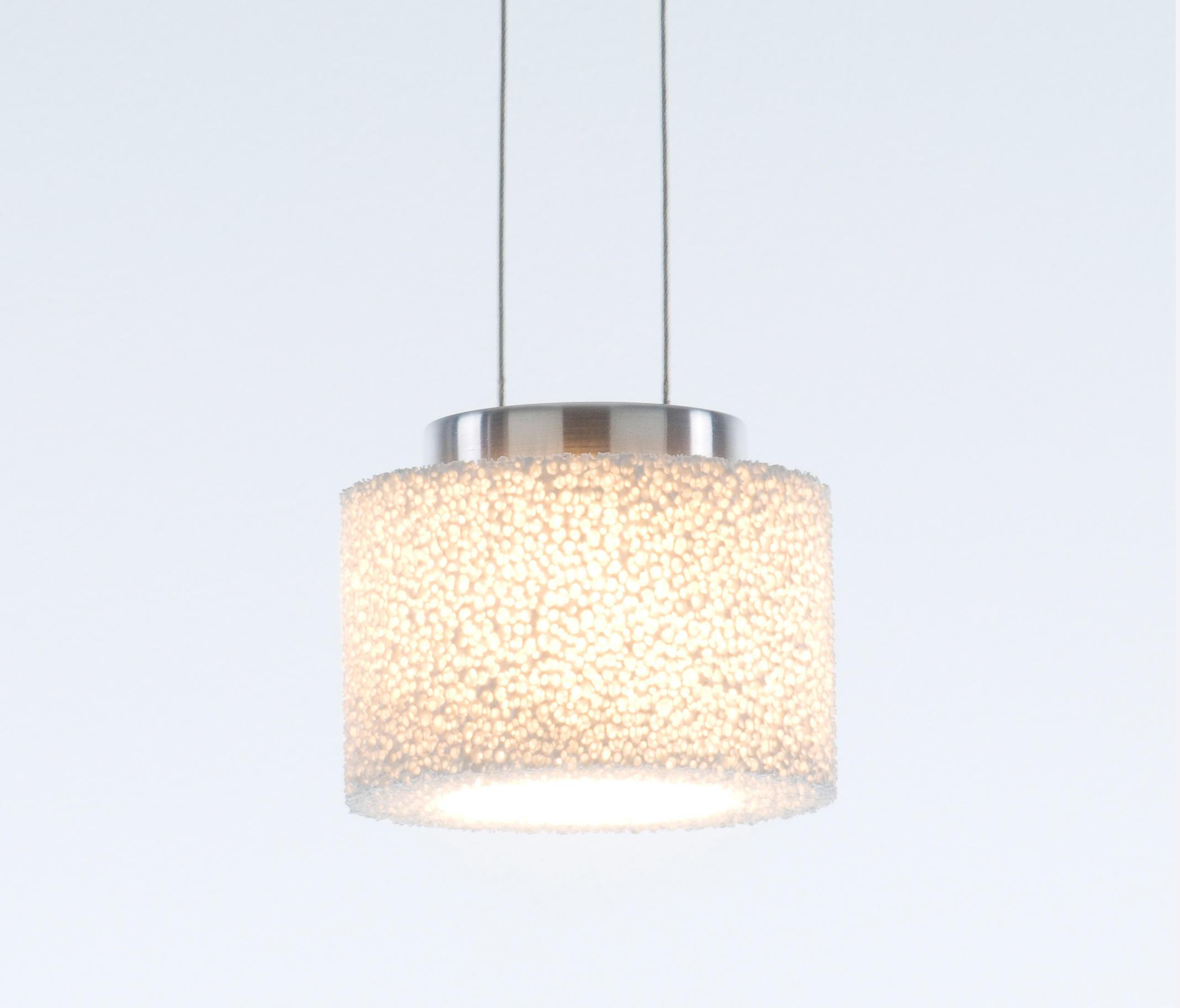 Durch die leicht poröse Struktur scheint das Licht stimmungsvoll und atmosphärisch in den Raum. Aus der Schirmöffnung wird helles und schattenfreies Licht auf den Esstisch abgegeben.