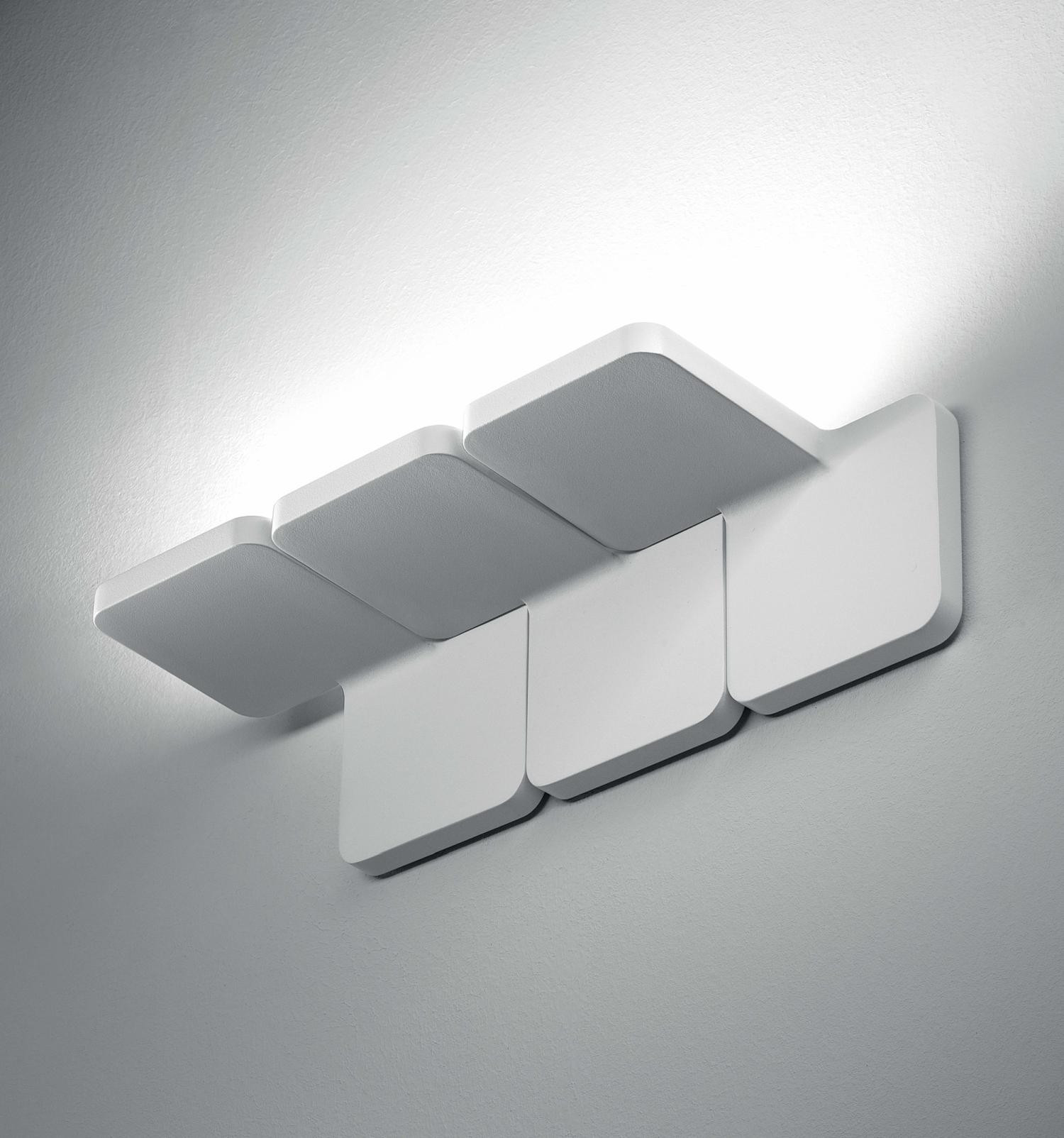 Bei der Stilnovo Quad W verschmelzen zwei quadratische Formen im rechten Winkel zu einer plastischen Struktur. Formen aus Aluminiumdruckguss, die wie Maschen ineinander greifen und die eine LED-Quelle beherbergen. Die Wandleuchte Quad W mit ihren weichen und leicht abgerundeten Linien synthetisiert die Einzigartigkeit dieses plastischen und dynamischen Elements. Die Wandleuchte wird zum Bindeglied mehrerer Installationen und sorgt für eine sehr eindrucksvolle Lichtwahrnehmung. Diese Wandleuchte ist bauseitig dimmbar und kann mit einem optional erhältlichen Casambi Modul auch per Smartphone App gedimmt werden.